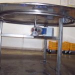I Tavoli Rotanti della Clempi snc, sono stati studiati per migliorare e garantire una stazione di accumulo prodotti nei fine-linea o fondo-macchina. Il prodotto generalmente viene trasportato nel piano del Tavolo Rotante mediante nastri a tappeto e convogliati nel piano del tavolo stesso. I Tavoli Rotanti possono essere dotati (a richiesta) di un deviatore prodotto per garantire che il punto di carico del tavolo non venga ostruito dal prodotto rimasto sulla bocca di carico e quindi portarlo al centro del piano. Le tipologie del Tavolo Rotante possono essere svariate, per soddisfare al meglio le esigenze della nostra Clientela. La macchina operatrice Tavolo Rotante è idonea per la polmonatura di prodotti in linea, è costituita da: